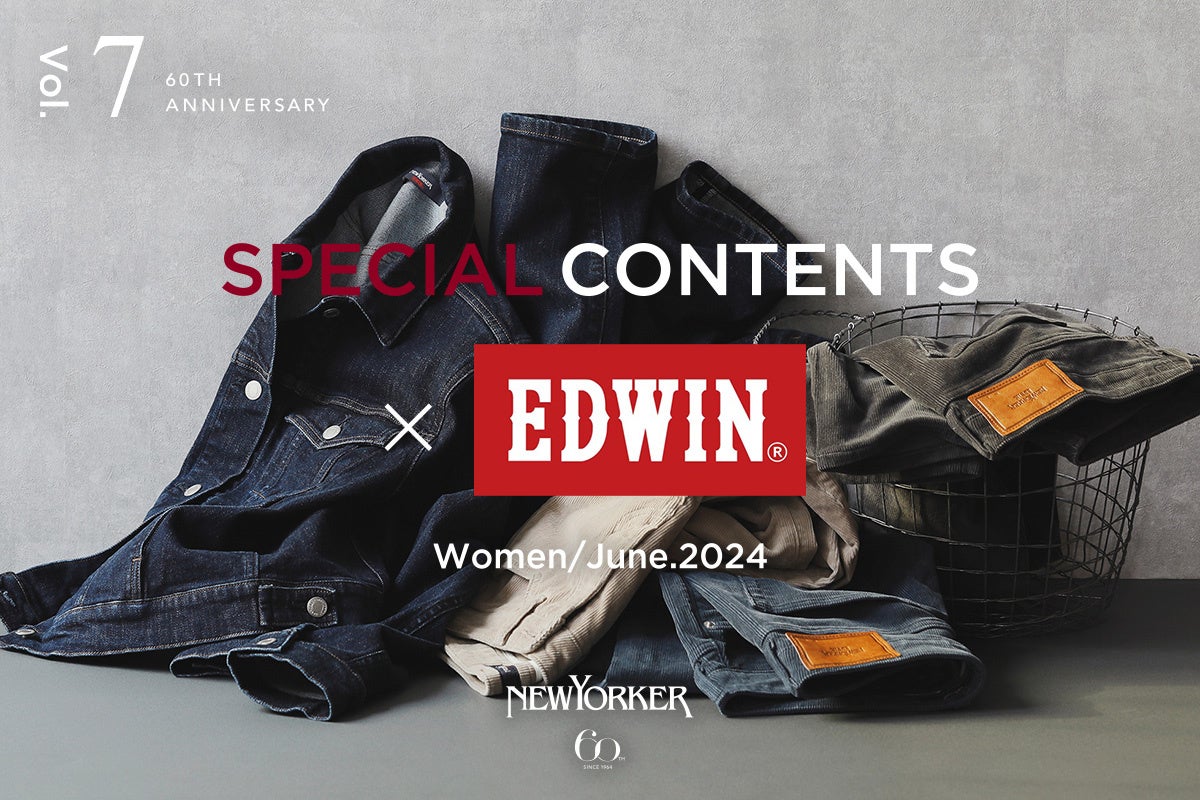 ブランド設立60 周年を記念してNEWYORKER ウィメンズでは、毎年ご好評をいただいている1961年に誕生した【EDWIN / エドウイン】とのコラボレーションが実現。今回のコラボレーションでは、「デニムパンツ」「Gジャン」「コーデュロイパンツ」の3型を展開。共に60周年を迎えたブランド同士がタッグを組み、素材からこだわったアイテムを順次展開していきます。