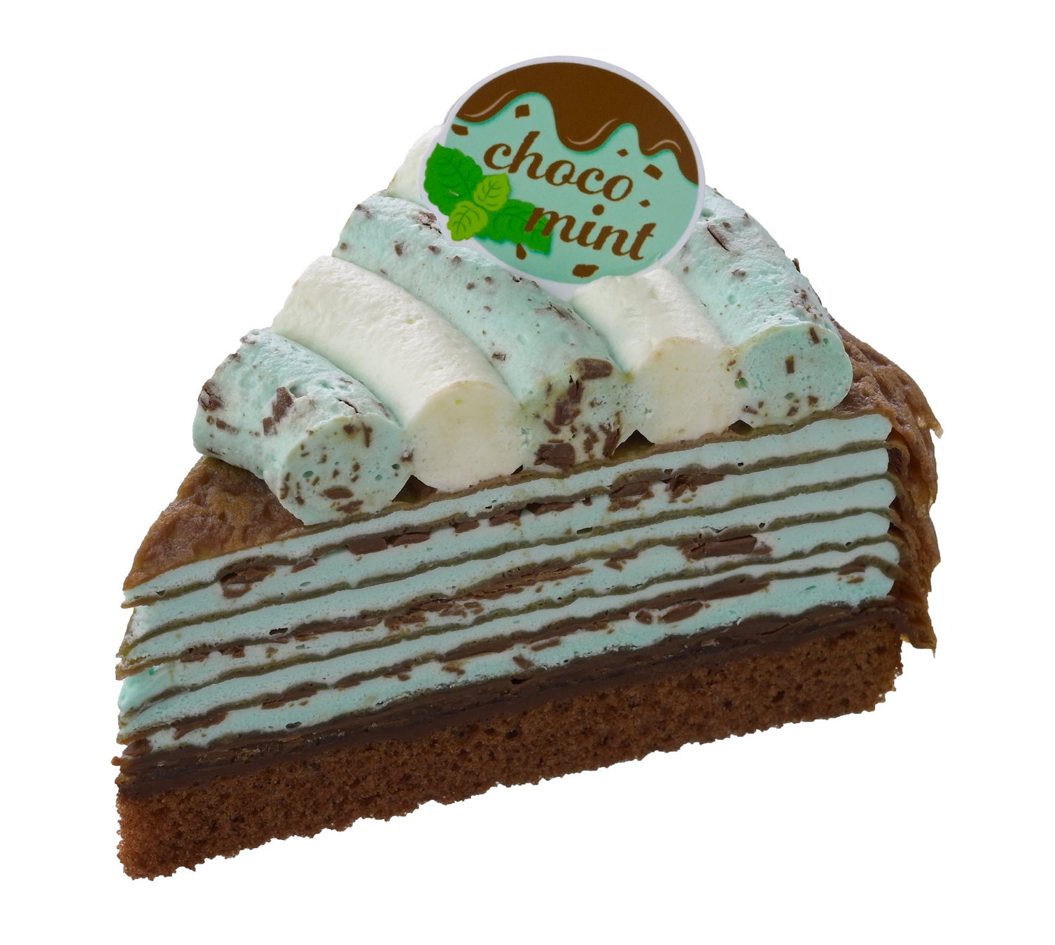 特長:チョコのパリパリ食感が楽しい、チョコミント味のミルクレープです。