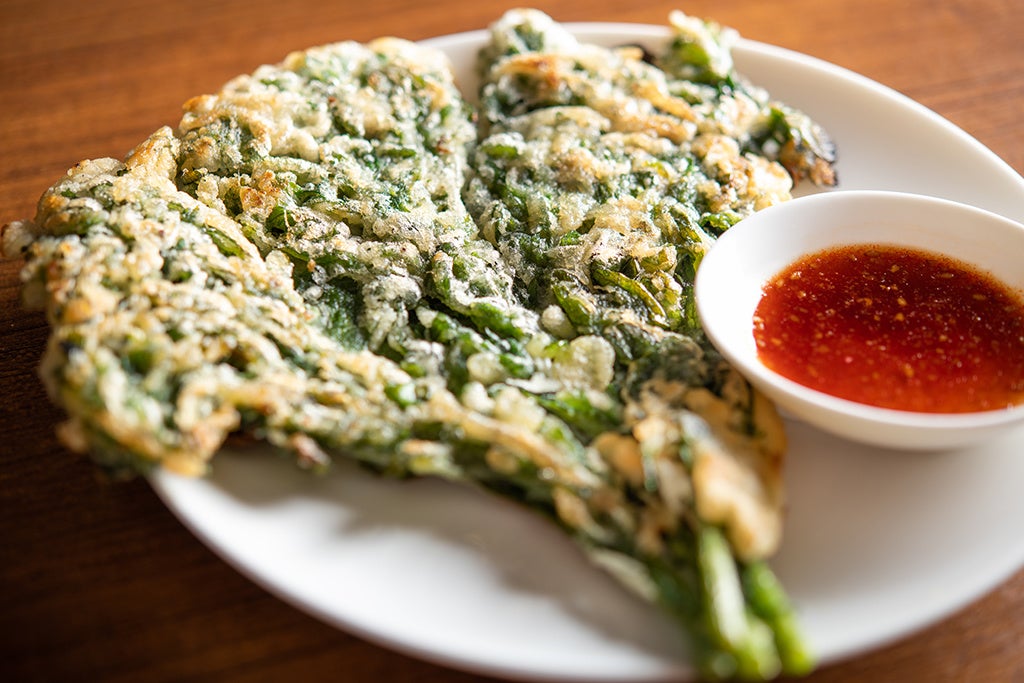 “韓国風お好み焼き”として、日本の韓国料理の中でも安定した人気を誇る「チヂミ」。定番のこのカテゴリにこそ、ラッキーソウルは新風を吹き込みます。野菜本来の味わいと食感を生かした薄衣のチヂミは、素材の良さをシンプルに活かす日本料理の特徴も取り入れた「ラッキーソウル」のオリジナル。プレーンでも、野菜に合わせてトッピングを加えたアレンジヴァージョンでも、これまでに出会ったことのない「チヂミ」の美味しさを発見できること請け合いです。