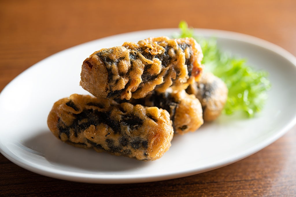 “チュクミ”とは韓国語で「イイダコ」のこと。小さくてもしっかりとタコの旨みと食感を持つイイダコと、厚切りの豚バラ肉を、3段階の辛さから選べる特製ブレンドの韓国味噌ベースで合わせています。付け合わせのえごまの葉で包んでお召上がりいただくと味のバランスは◎。ヤミツキ必至の旨さで、注目度上昇中の韓国フードです。