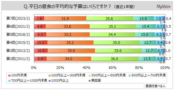 マイボイスコム株式会社(東京都千代田区、代表取締役社長:高井和久)は、7回目となる『昼食』に関するインターネット調査を2023年2月1日~5日に実施しました。調査結果をお知らせします。