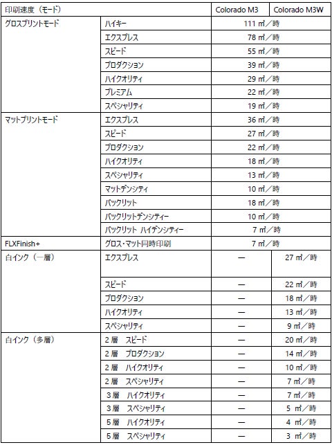 グロスモードの高品質モードで29m2/時、マットモードの高品質モードで18m2/時と高速印刷が可能です。白インクを活用した多層印刷の印刷スピード(例:2層ハイクオリティモードで10㎡/時)や、プリントヘッドのオートメンテナンスなどの自動化機能などは、「Colorado M5/M5W」と同様の機能を備えており、高生産性を実現しています。