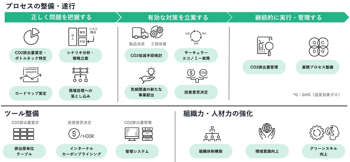 経営から現場まで、一気通貫でGXの取組みをご支援するコンサルティングサービスを提供しています。