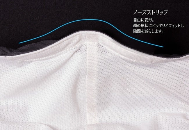 高い撥水性によりマスク内部に汚れや水分が侵入することを防ぎます。一方で、呼吸が苦しくならないよう通気性も確保。