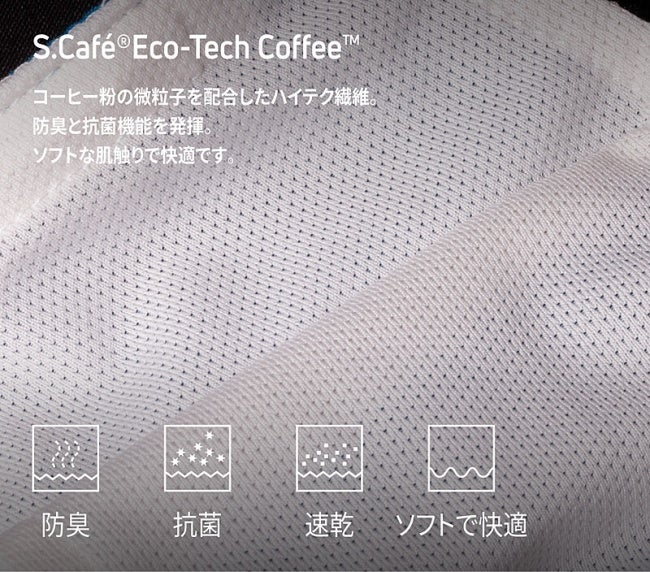 さらに、長時間の装着でも快適に過ごせるようハイテク繊維「S.Café®Eco-Tech Coffee™」を内側に使用。