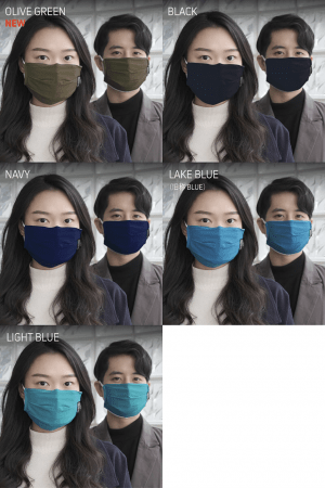 「SINGTEX PROTECTOR+」マスクカバーは大人用はOLIVE GREEN、INDIGO BLUE、LIGHT BLUE、BLACK、GRAY、NAVY、LAKE BLUEの6色展開。