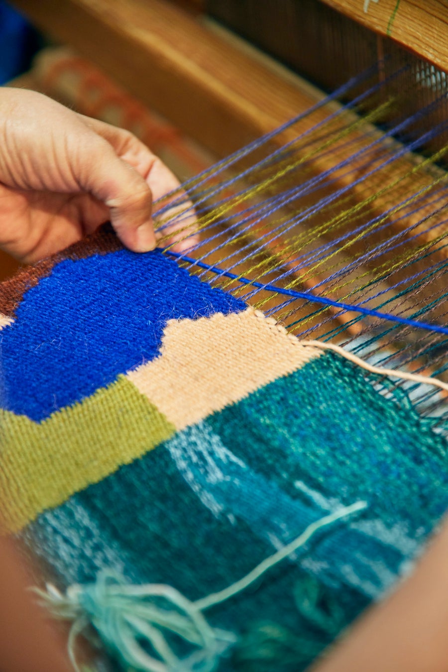 北欧の基礎学校(小中一貫校)には、伝統的手工芸について学ぶ「スロイド」という授業があり、実際に大きな機織り機で織物づくりを行うこともあります。また、大人になってから手工芸学校に通い、学び直すこともできます。誰にでも開かれた、手仕事や自然素材に触れられるこうした経験が、北欧のテキスタイルを未来へとつないでいくのです。