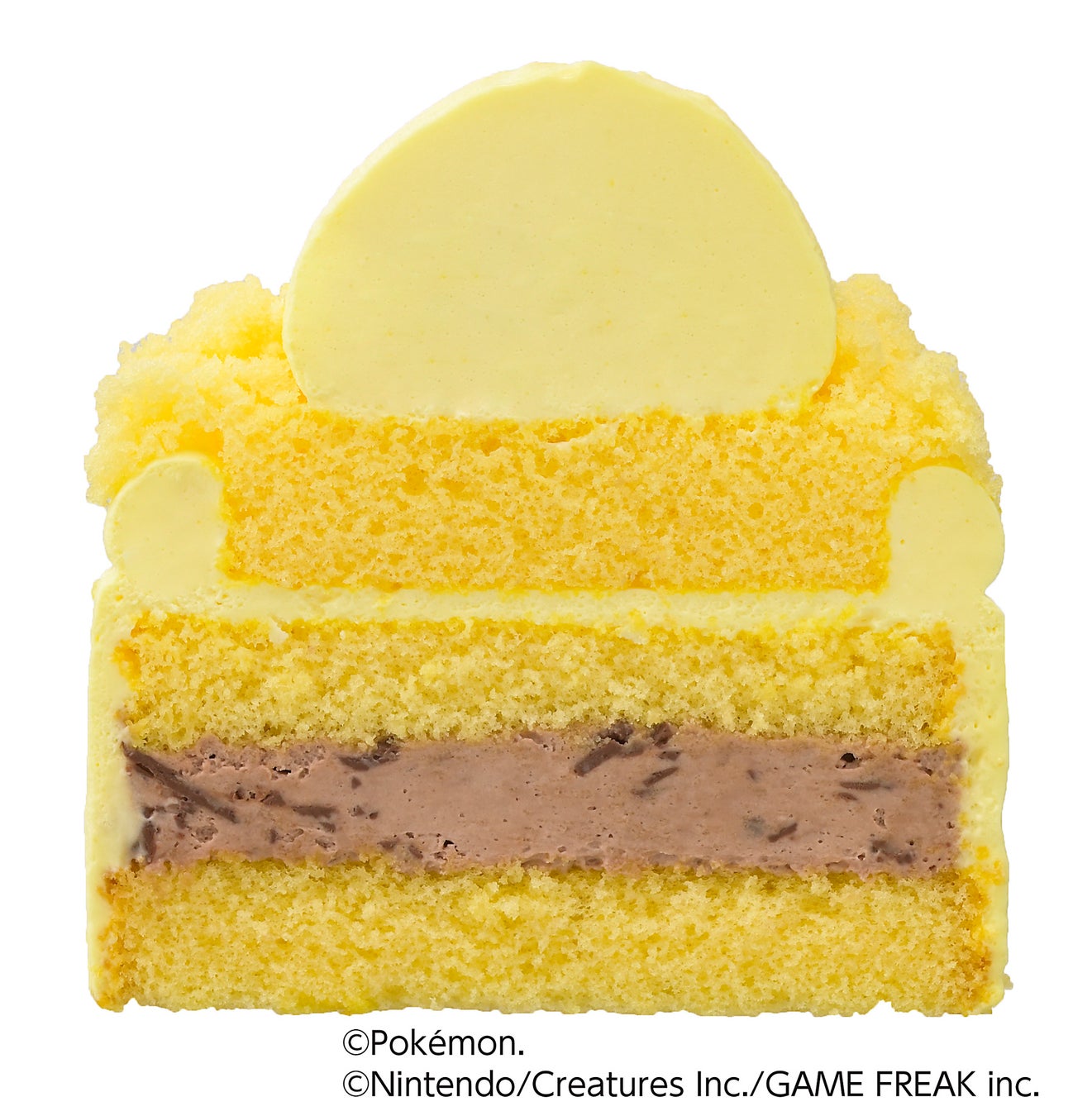 特長:ポケピースのピカチュウにフォーカスしたおひとりさまサイズのケーキです。ふわふわのバナナスポンジでチョコクリームをサンドし、バナナクリームで仕上げたピカチュウのまわりには、ふわふわのバナナスポンジクラムを散らしました。