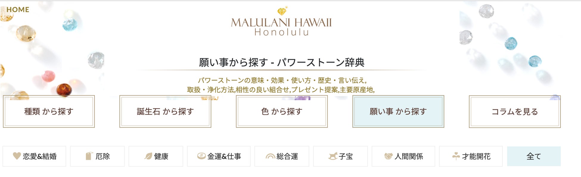 【種類、誕生石、色、願い事から探せる】"パワーストーン特集ページ" ハワイ発パワーストーンブランド マルラニハワイでサイトがリニューアルいたしました