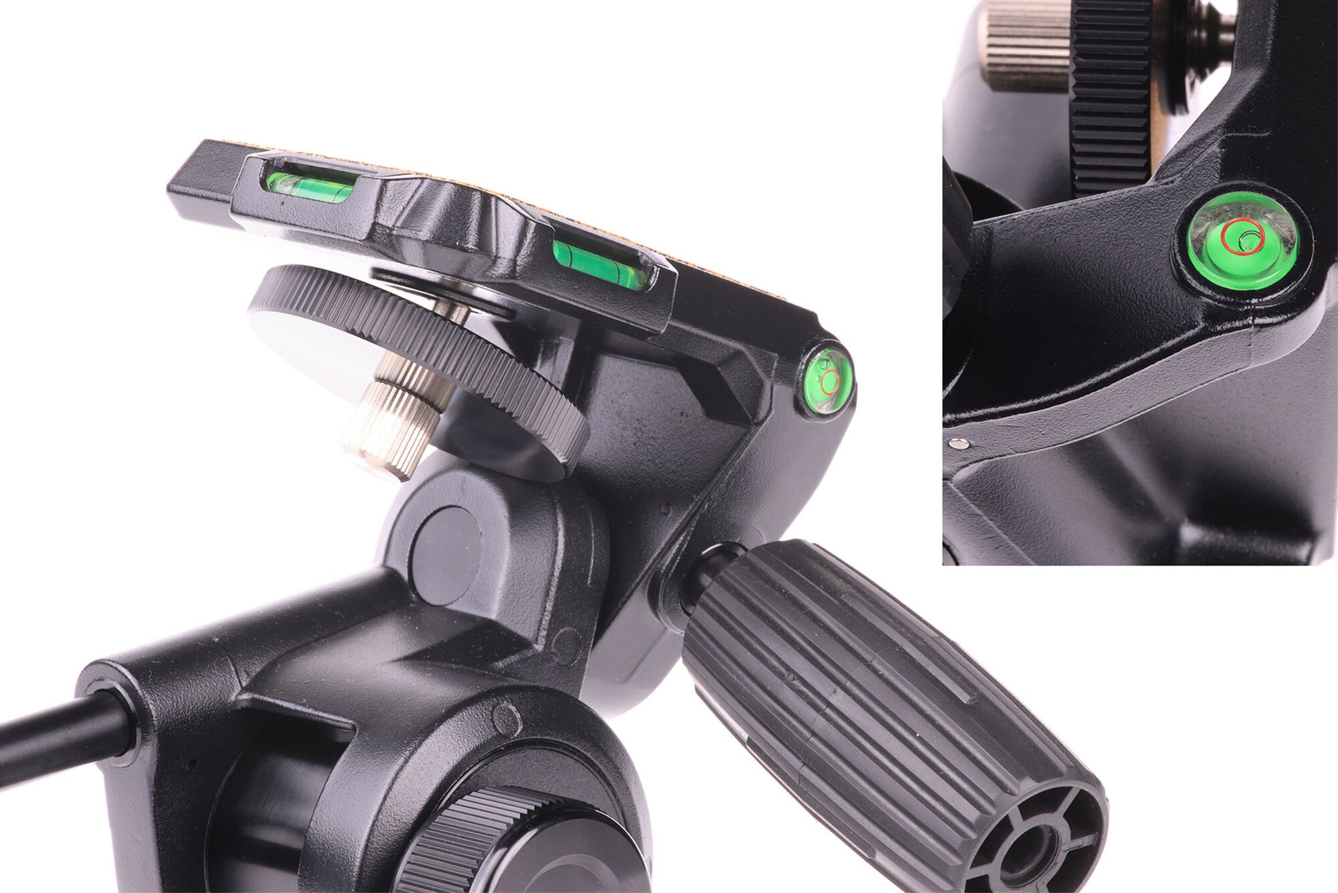 横位置時の2軸水準器に加え、縦位置時に役立つ1軸水準器を雲台脇に装備。