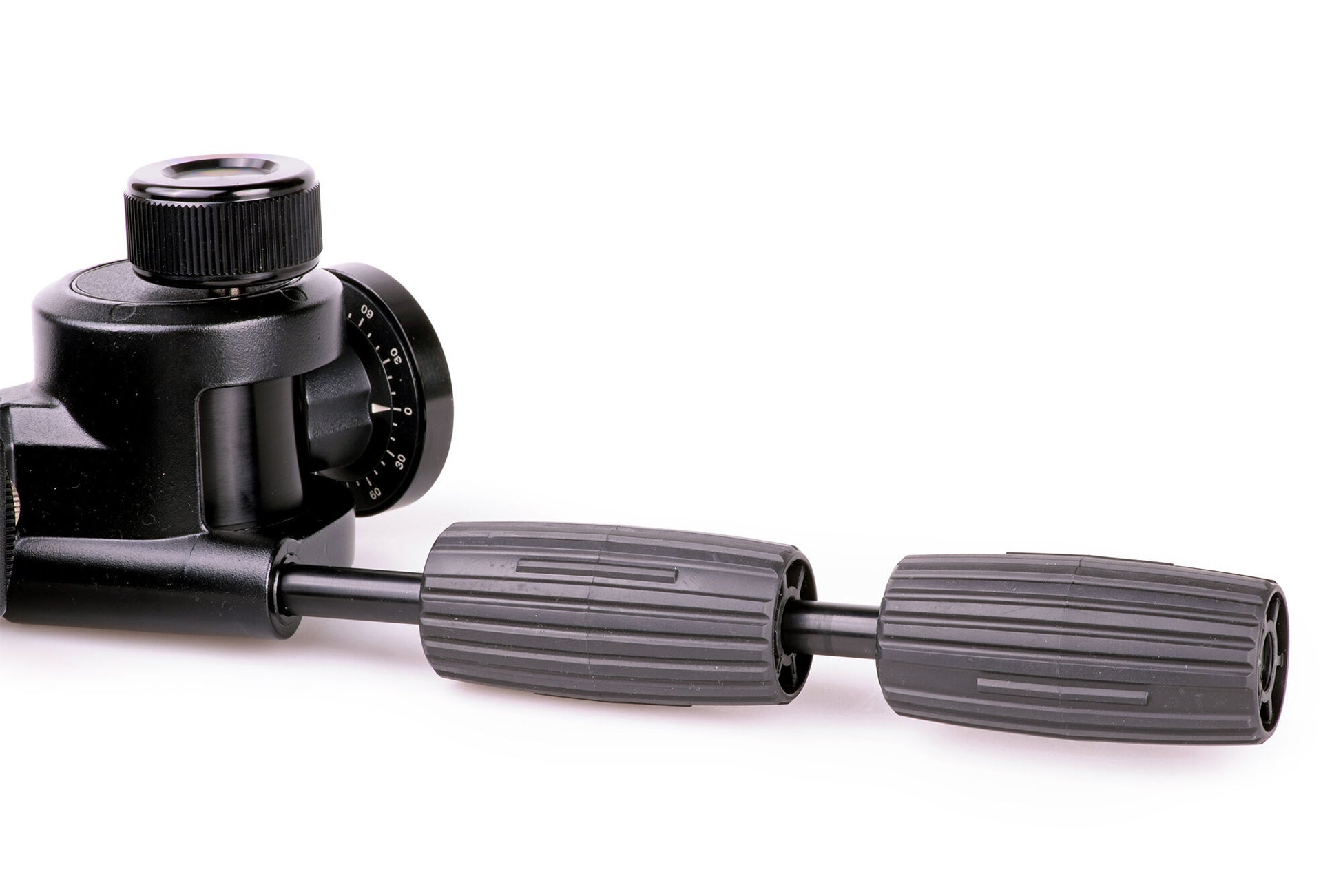 雲台に付けたままでも邪魔になりにくいショートハンドルを採用しています。