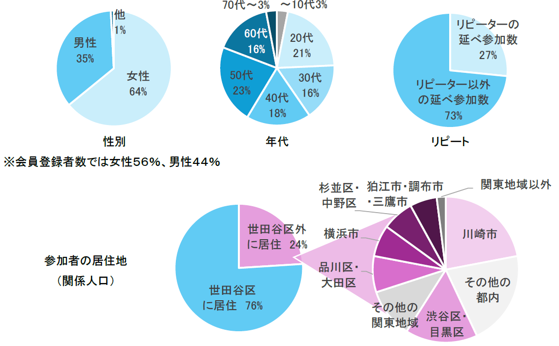 これまでの実証実験では、2026年2月末までに延べ約700名が地域活動に参加しました。2025年11月末に実施した会員向けアンケートでは、参加者の約4分の1がリピーターであったほか、区外からの参加者も3割弱を占め、区外、地域外も含めた参画の動きが見られました。参加者は若年層を含む幅広い年代・性別にわたり、主催者・参加者双方から高い満足度を得られたことから、地域の担い手を育むプラットフォームとしての本サービスの有効性が示されました。また、民間と行政が連携して取り組むことで、従来は地域活動に関心の低かった層の参加も見られ、地域の担い手となり得る人材の裾野を広げる、官民連携の新たな可能性を確認することができました。