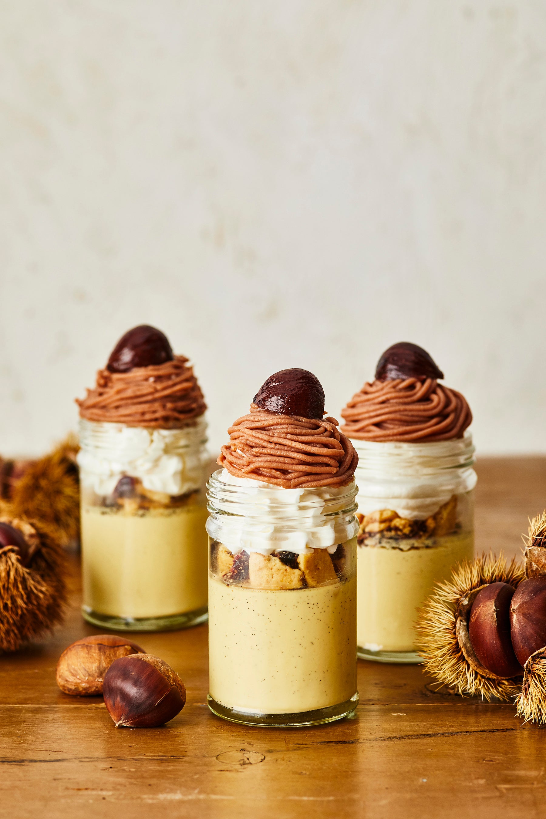 - ■濃厚な自家製プリンをヨーロッパ栗のモンブランにアレンジした瓶入りスイーツも登場