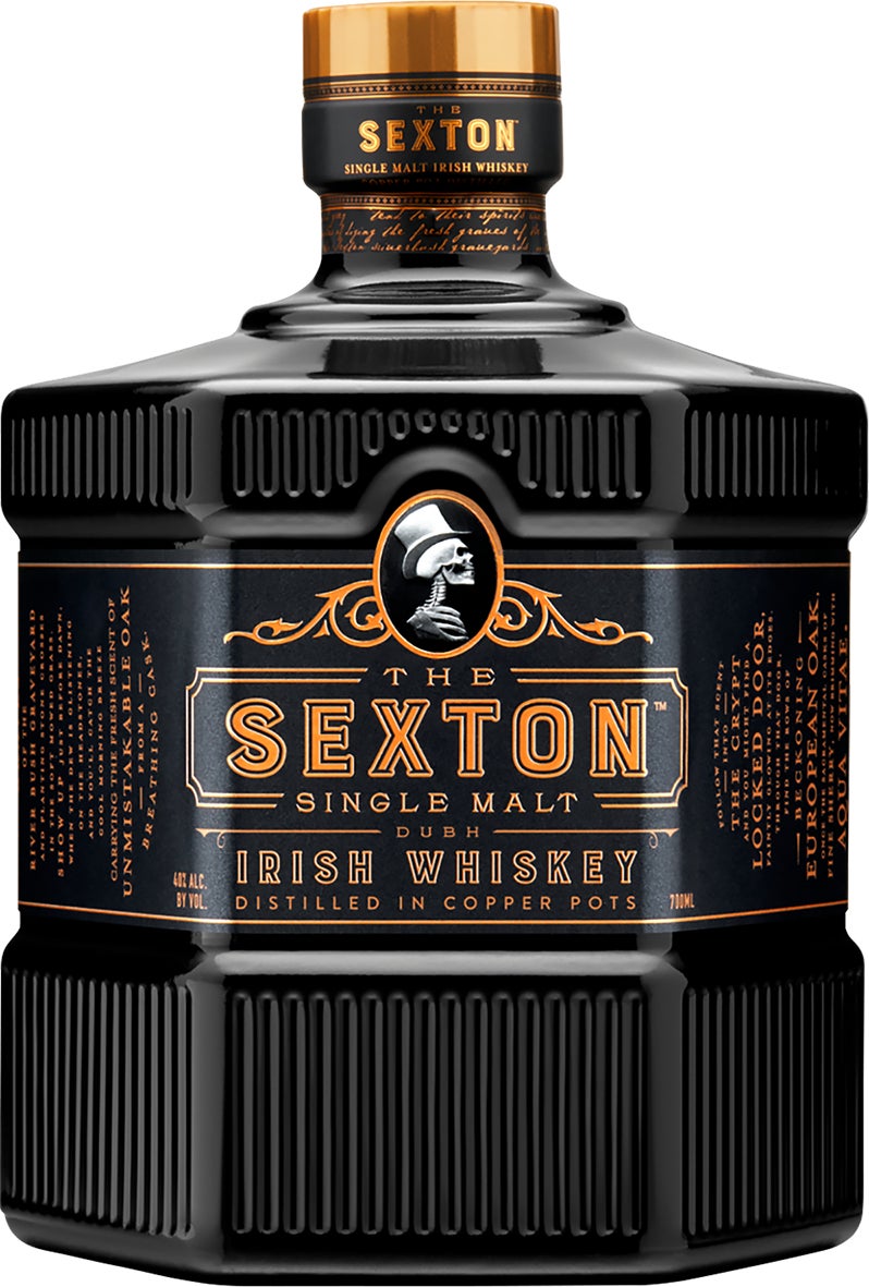 『ザ・セクストン シングルモルト』はアイルランド産麦芽100%使用のシングルモルトアイリッシュウイスキーです。ポットスチルで3回蒸溜し、オロロソシェリー樽で4年熟成しています。深みのある色合いと複雑な風味が特長であるオロロソシェリーの樽を使用することで、4年間という短い熟成期間にも関わらず濃密な風味を生み出しています。ダークチョコレートや蜂蜜のような香りとイチジクやレーズンを感じる味わいが楽しめます。ボトルはシルクハットをかぶったガイコツの墓守(セクストン)を中央部に配置したミステリアスなデザインが特長です。若年層が集うバーなどを中心に、ロックやカクテルなどの飲み方提案を通して、商品の魅力を伝えていきます。