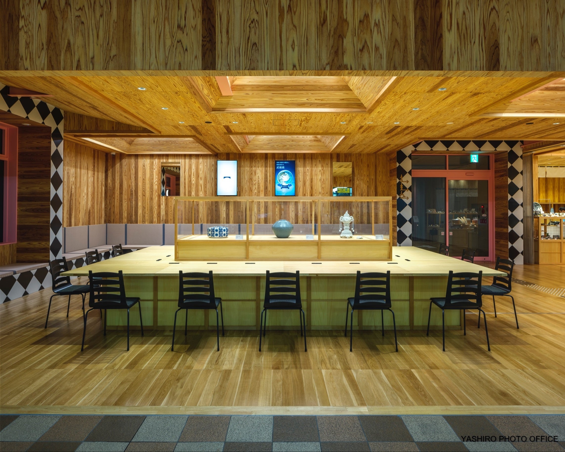 また、隣接する在来線待合スペース中央のビッグテーブルには「武雄焼」の作品を展示するなど、ギャラリーとして、観光客の皆様にも、市民の皆様にもお楽しみいただけます。