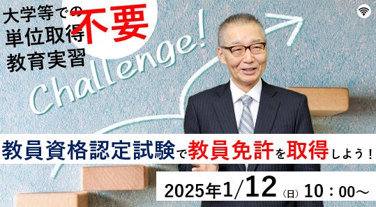 【教員資格認定試験】オンラインセミナー「大学等での単位取得不要!教育実習不要!教員資格認定試験で教員免許を取得しよう!」を2025年1/12(日)に開催