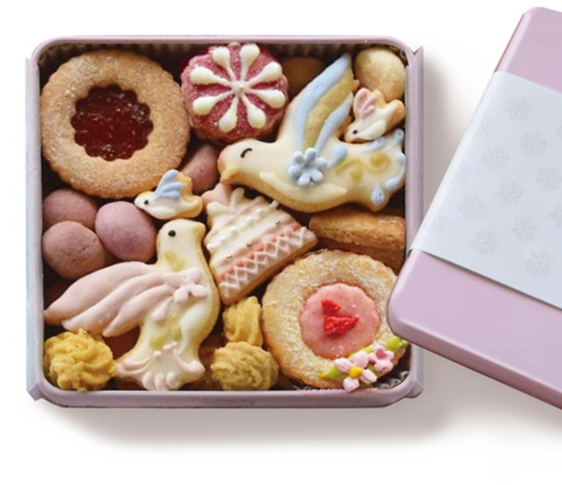 奈良県の造形作家である岡本彩さんが作るクッキーが詰まったクッキー缶。かわいいクッキーの紋様はそれぞれ意味があり願いがこめられている素敵な作品です。