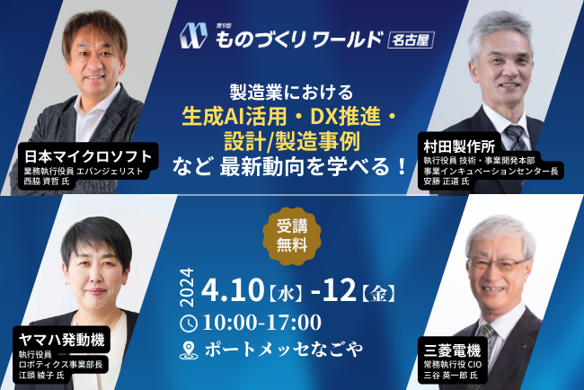 【4月10日(水)~開催】SUBARU/デンソー/ヤマハ発動機/村田製作所 等が登壇!製造業の最新トレンドを学べる無料セミナーを開催 @ポートメッセなごや