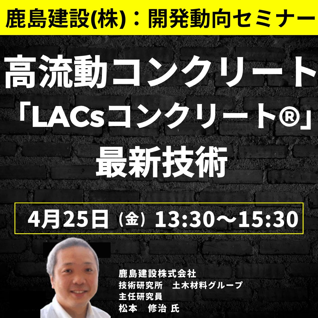 松本 修治 氏を招聘し、高流動コンクリート「LACsコンクリート®」その最新技術開発動向と 今後の展開について詳説いただくセミナーを開催します。