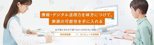 中学生までに身につけておくべき情報活用・プログラミングの知識・スキルを3カ月で学ぶ「教科実践編」(3カ月講座)と、自分専用のコンピュータを使った幅広い実践で、必要な知識を押さえつつスキルをぐんぐん伸ばす「コンピュータ活用編」(12カ月講座)をご用意しています。