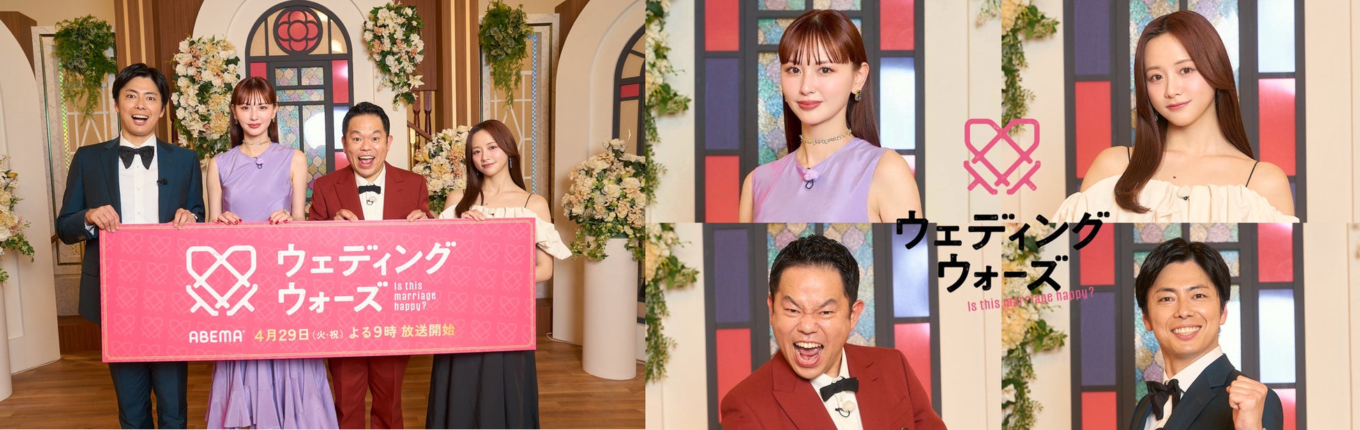 秘密や事情を抱えた8組のカップルは、果たして幸せのゴールに辿り着くことができるのか?試される愛、バレる本性、揺れる関係…男女の生々しい本音が暴かれていく、過酷な婚前合宿サバイバル『ウェディングウォーズ』は、2025年4月29日より毎週火曜日の夜9時から放送いたします。スタジオでの4名のトークもどうぞお楽しみに。