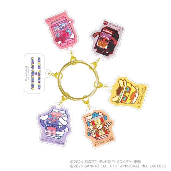 仮面ライダーガヴ×サンリオキャラクターズの6連アクリルチャームが登場!ひとつずつ取り外してチャームとしても使えます。