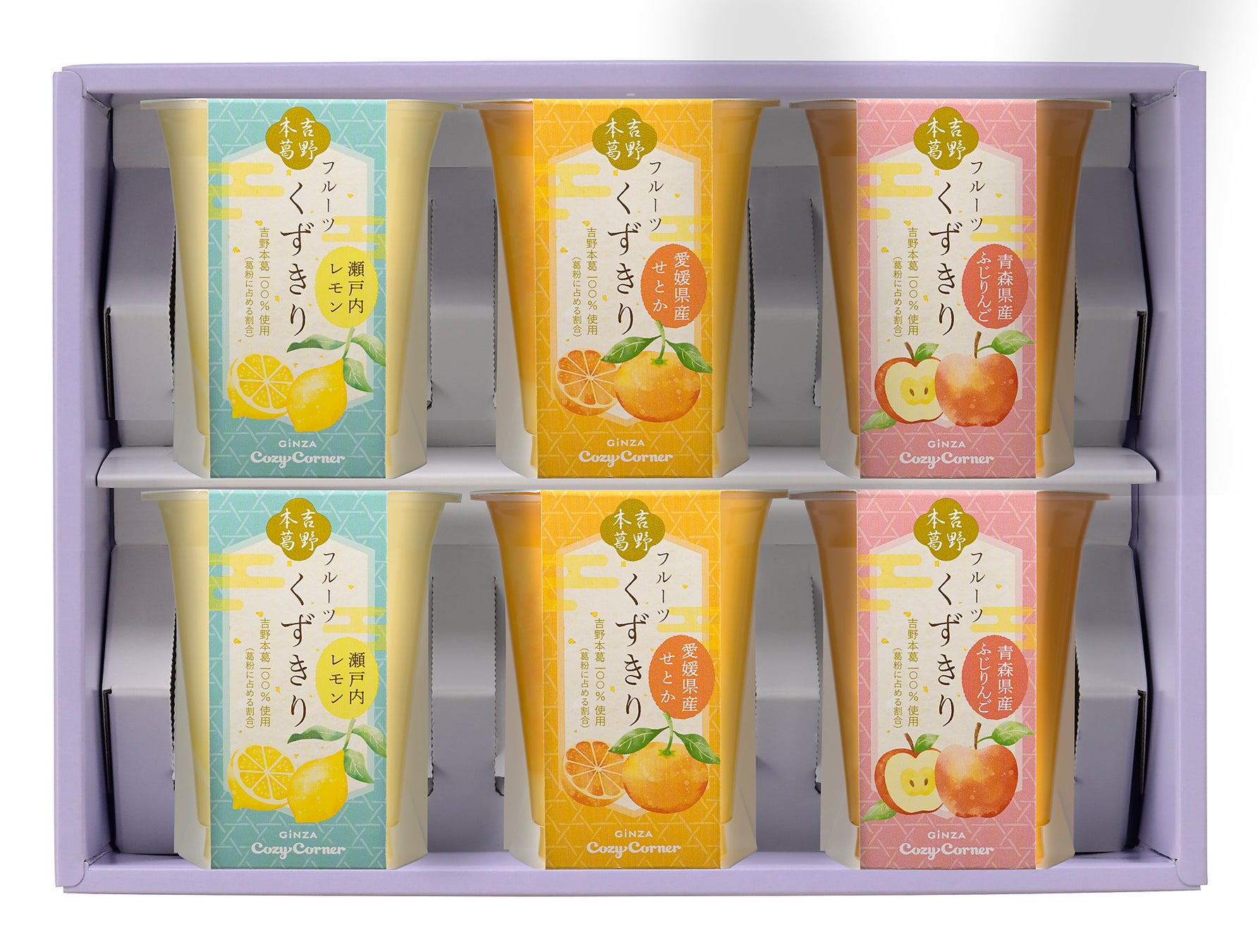 内容:フルーツくずきり(青森県産ふじりんご、瀬戸内レモン、愛媛県産せとか)各2個