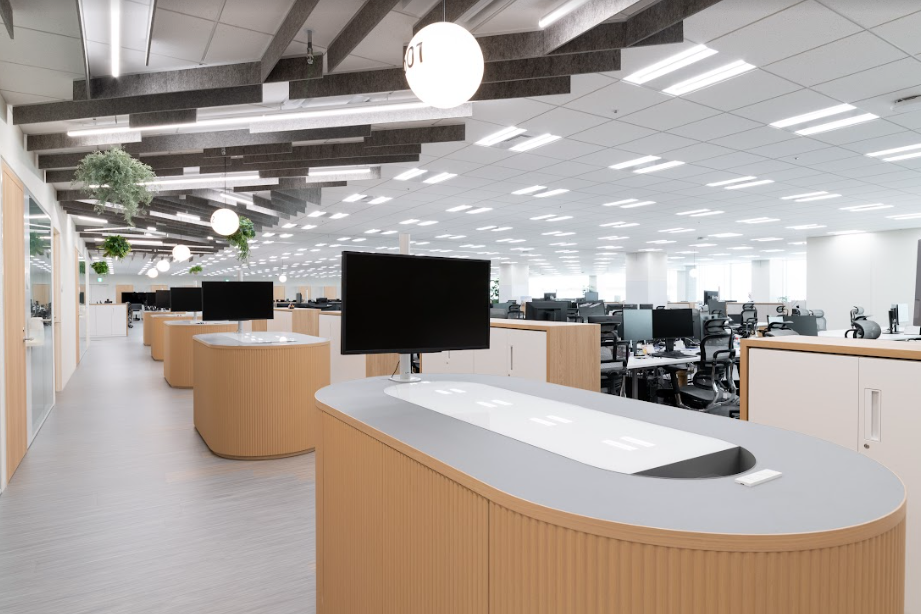 アフターコロナを見据え、安心して働きながらコミュニケーションがとりやすいオフィス環境を目指し、感染経路として考えられる接触感染、飛沫感染、空気感染それぞれに対応すべく科学的根拠に基づいた対策を施しています。消毒液やパーテーションの設置など基本的な対策をはじめ、専門家監修による空調設備等の増強工事、床材や什器に抗ウイルス天然素材のリノリウムを採用しています。