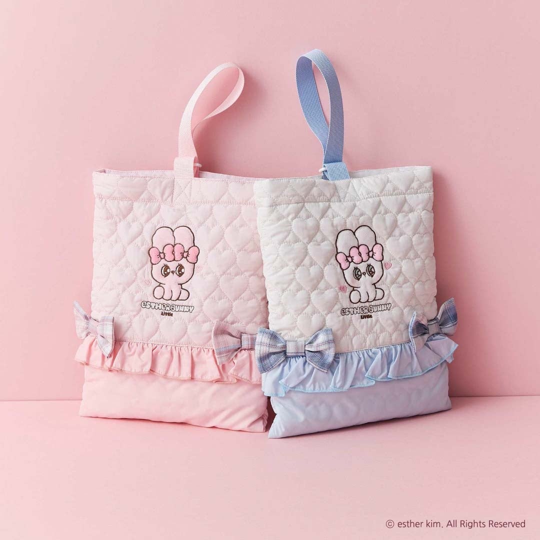 本コラボレーションでは、リボンやハートモチーフにオリジナルのチェック柄を取り入れ、「ロペピクニック」らしい上品でフェミニンなエッセンスをプラス。毎日持ち運びたくなる、ふわふわのフェイス型ポーチや、刺繍がポイントのミニタオルなど、日常に取り入れやすいアイテムをラインアップしました。さらに、推し活にもぴったりな大きめバッグはぬいぐるみ用ポケットをつけ、「エスターバニー リトル」といつでも一緒にいられる遊び心のある仕様です。