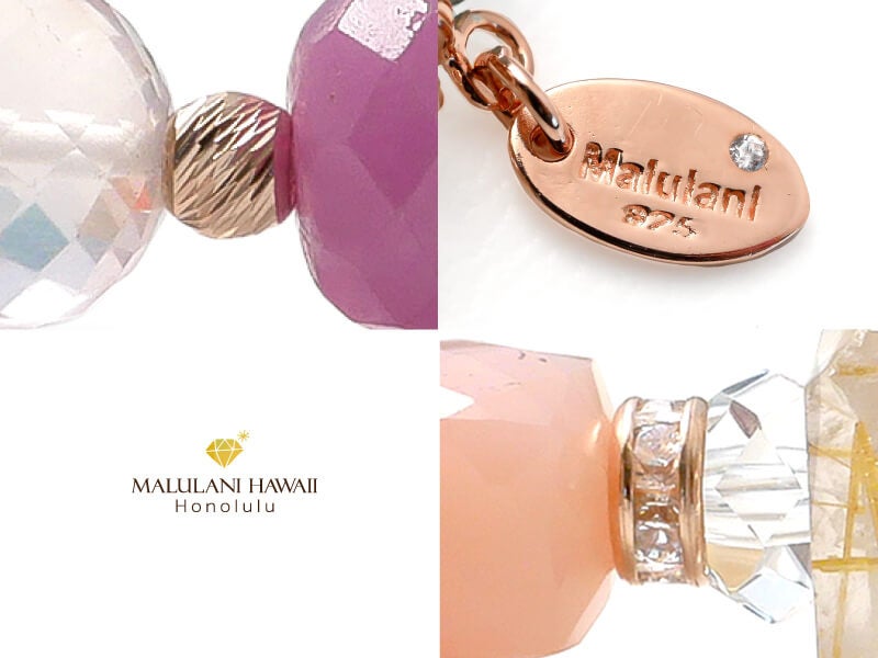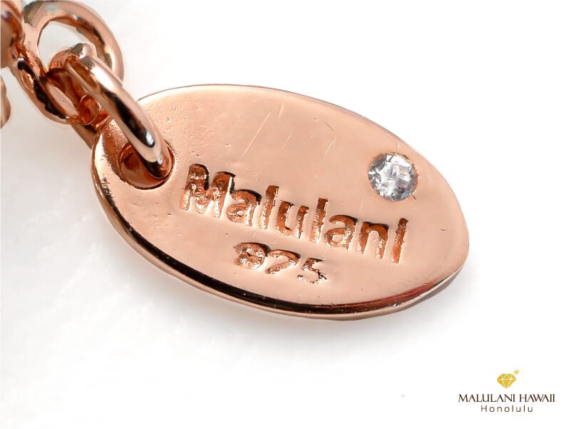 キラリと光るオリジナルチャームには、「神に護られた」という意味のハワイ語「Malulani」と刻印。