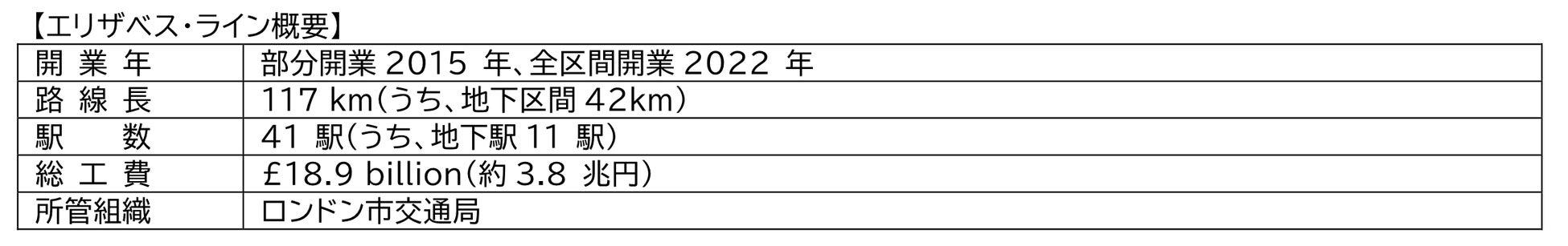 ※ ロンドンの公共交通ネットワークの運営、主要道路の管理、そしてロンドン市長の交通政策および公約の遂行を所管する総合交通局。子会社の Rail for London Infrastructure Limited を通じ、ロンドン中心部におけるエリザベス・ラインの鉄道インフラを所有・維持管理しています。