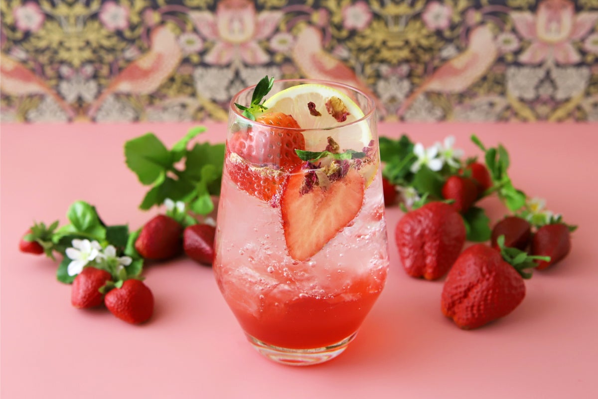 甘酸っぱい苺のレモネードにドライローズを合わせた華やかな香りのレモネード。