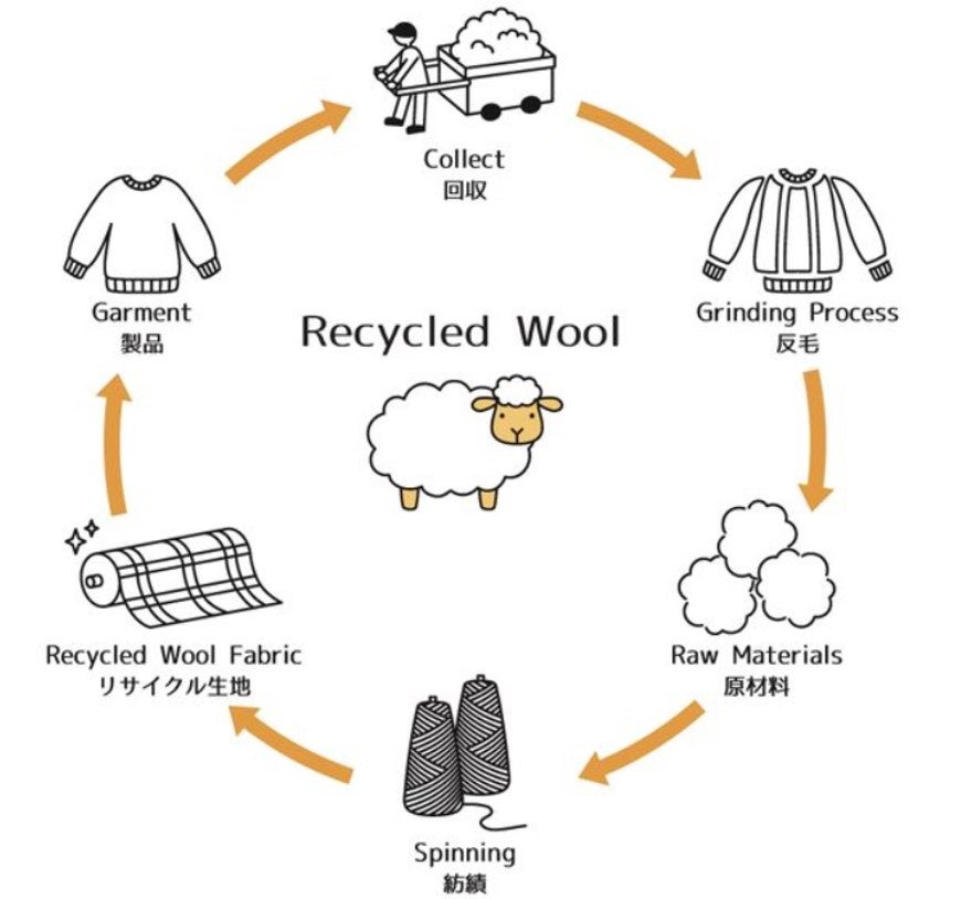 使い古した古着・裁断くずをリサイクルしてウール素材に!