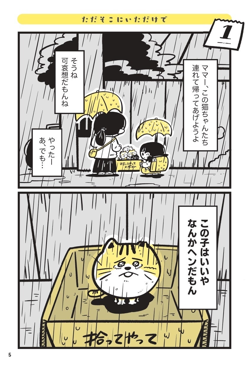 モデルになったのは、著者である吉本氏が通りがかった公園にいた、目から血を流したボロボロの捨て猫。あまりの有り様に不憫に思った吉本氏は、持っていたオヤツをその猫に与え、家に連れ帰りました。
