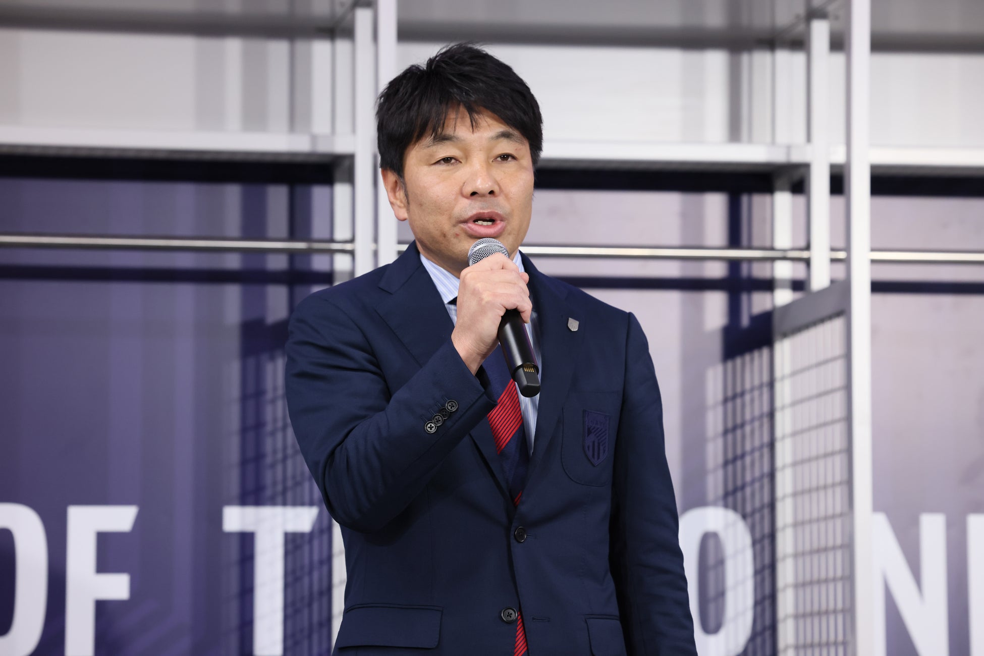 続いて、FC東京新監督に就任する松橋力蔵(まつはし りきぞう)氏が登壇し、早くファン・サポーターからの信頼を得ることを目指すことに加え、スタジアムが熱狂の渦に包まれるように攻撃的なフットボールを目指すと、2025シーズンに掛ける想いを熱く語りました。