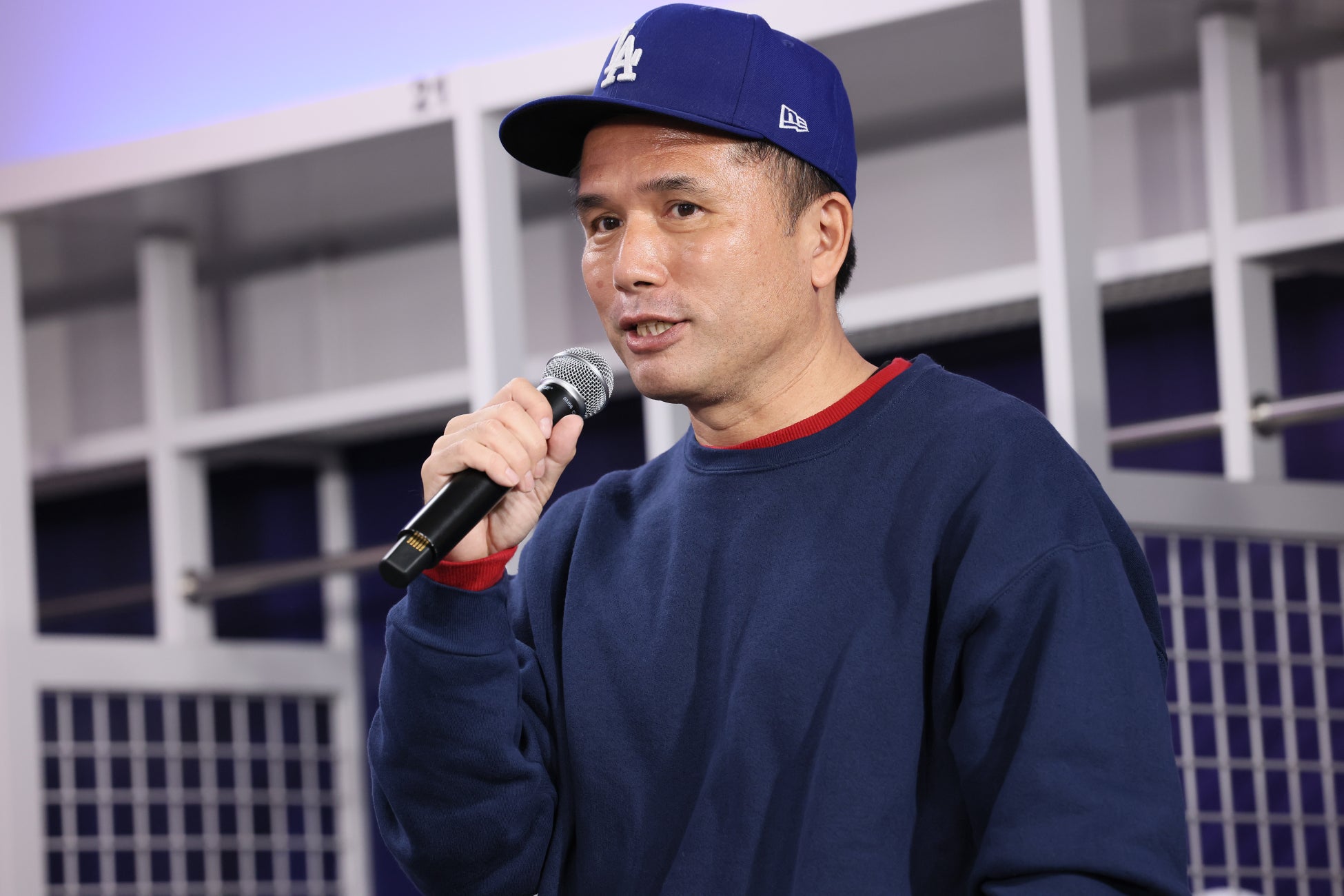 2025シーズン新ユニフォームの発表パートでは、新ユニフォームをスタジアムだけでなく、普段の服装とも掛け合わせたスタイリングが紹介されました。新ユニフォームのルックブックをスタイリングしたスタイリストの梶雄太(かじ ゆうた)氏が登壇し、幅広い層へライフスタイルシーンでのユニフォーム着用提案について、東京らしく街へ馴染ませることを意識したと語り、ルックブックの3枚の写真をめくりながら、ポイントを説明しました。