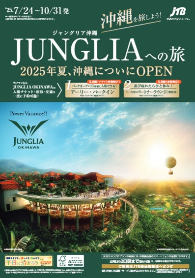 株式会社JTB(本社:東京都品川区 代表取締役 社長執行役員:山北栄二郎、以下「JTB」)は、沖縄に新たに開業するテーマパーク「JUNGLIA OKINAWA(ジャングリア沖縄)」の運営会社である株式会社ジャパンエンターテイメント(沖縄県名護市 代表取締役 加藤 健史、以下「ジャパンエンターテイメント」)と、旅行カテゴリー(日本国内)における唯一のパートナーとして「オフィシャル・マーケティング・パートナーシップ契約」を締結し、オフィシャル・マーケティング・パートナーシップ企業だからこその体験価値の高い旅行商品を開発・発売します。