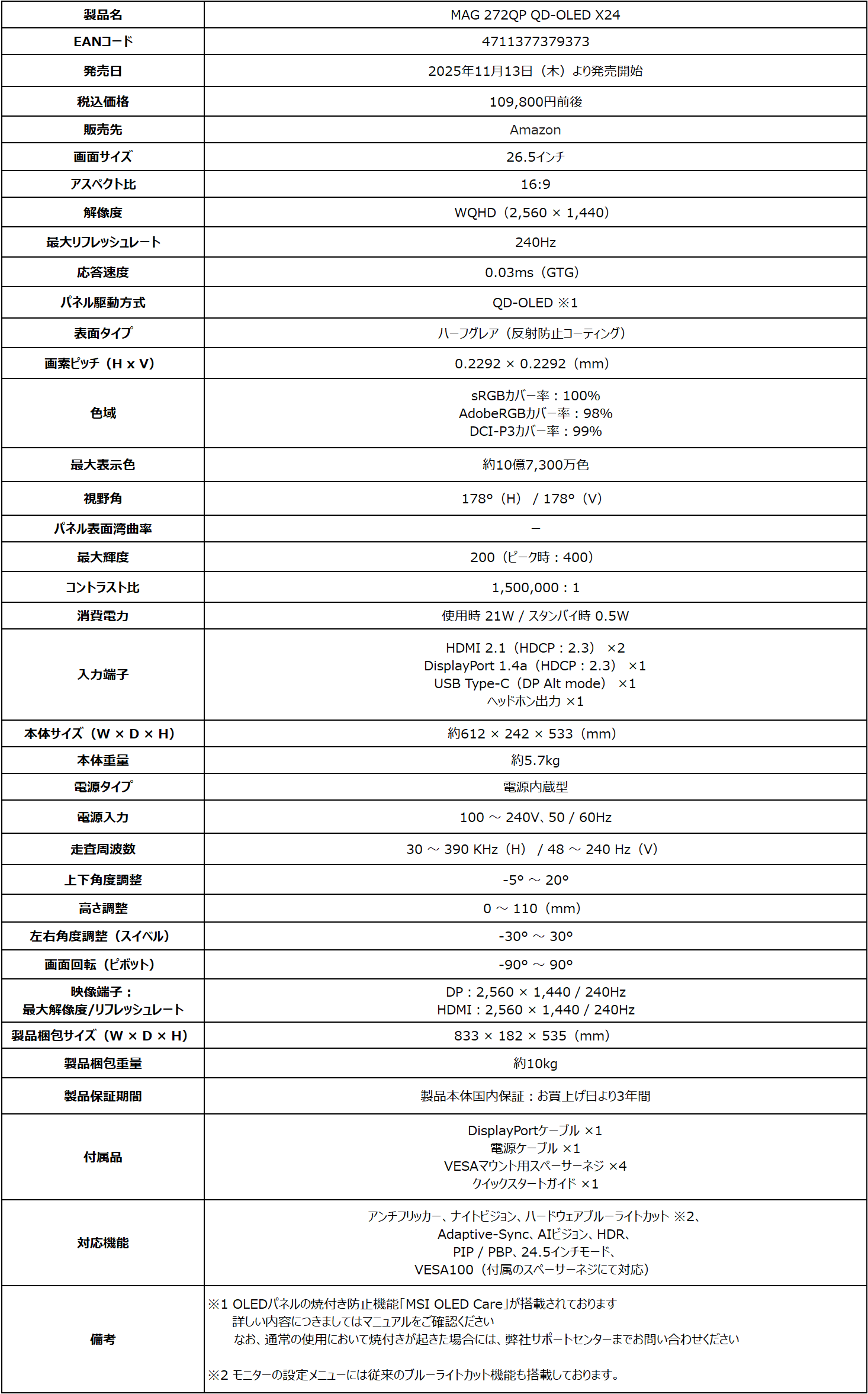 https://jp.msi.com/Monitor/MAG-272QP-QD-OLED-X24