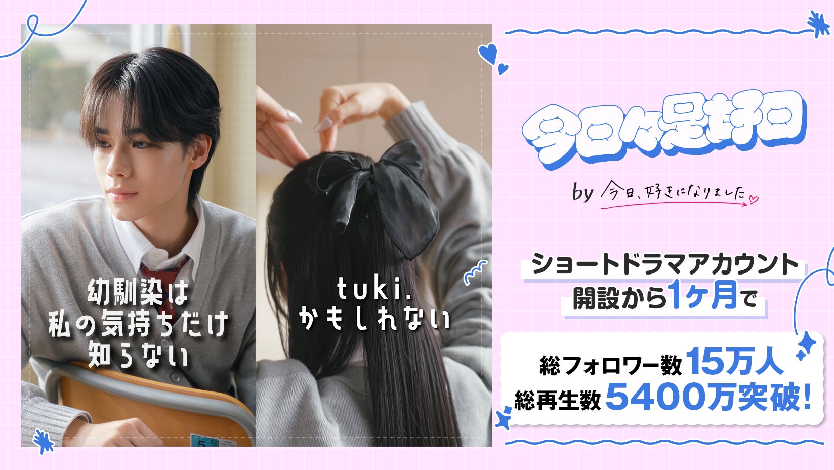 新しい未来のテレビ「ABEMA(アベマ)」は、ティーンを中心に絶大な人気を誇るオリジナル恋愛リアリティーショー『今日、好きになりました。』(以下、『今日好き』)の縦型ショートドラマアカウント『今日々是好日(こんにちにちこれこうじつ)』を2025年3月19日(水)より新たに開設。開設から1か月で総フォロワー数15万人、ドラマの縦型ショート動画の累計再生数が5400万回を突破したことをお知らせいたします。なお、本アカウントおよびドラマの縦型ショート動画は、『今日好き』シリーズのプロデュースを手掛けたスタッフと『SNSクリエイティブスタジオ』スタッフが率いる制作チームが企画・運用し、配信が待ち遠しいショートドラマとして話題を呼んでいます。また、『今日々是好日』のタイアップ広告メニューも同時にリリースいたします。