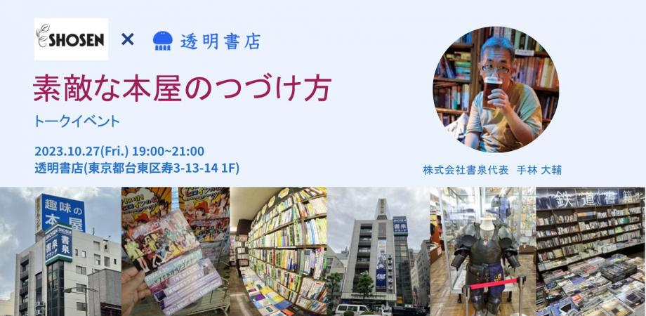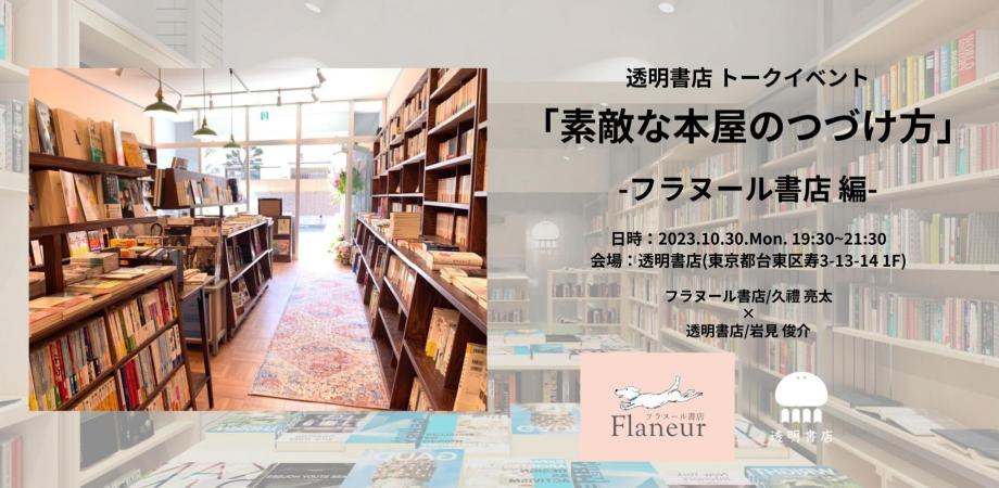 ・freeeグループが経営する書店「透明書店」にて、書店の個性や強みの作り方について話すイベント「素敵な本屋のつづけ方」の10/27(金)書泉グランデ 編、10/30(月)フラヌール書店 編を開催します