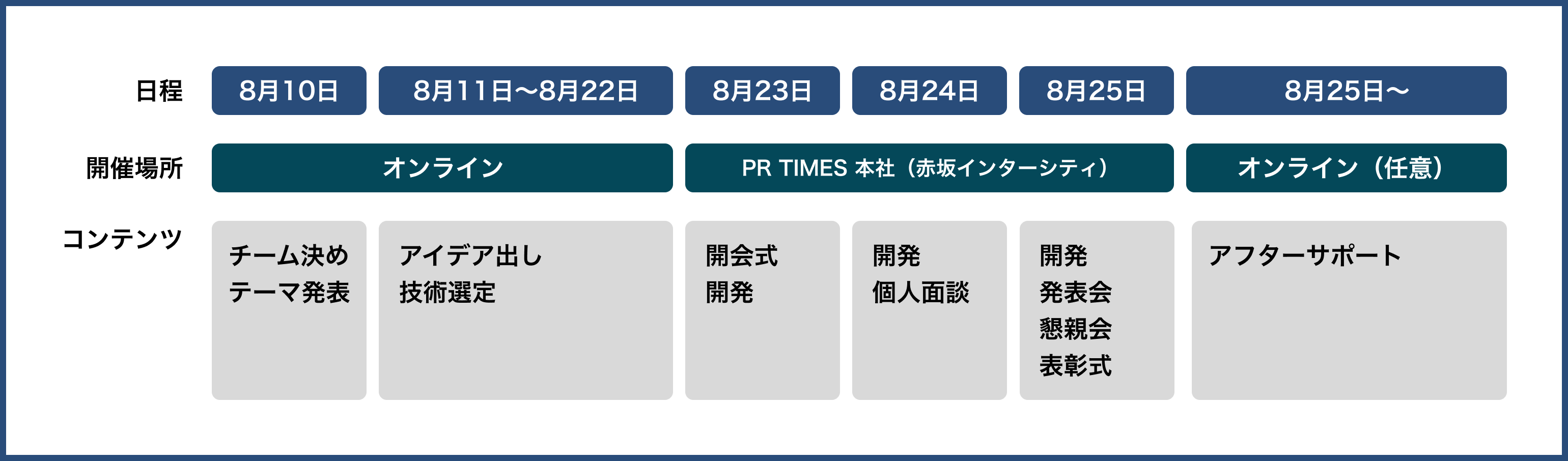 事前のチーム決めとテーマ発表で初日から開発に集中できるスケジュールに