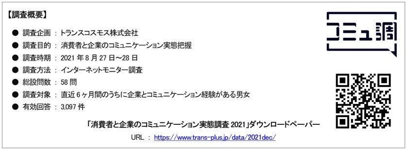 トランスコスモス株式会社(本社:東京都豊島区、代表取締役社長兼COO:奥田昌孝)は、「消費者と企業のコミュニケーション実態調査2021」を発表しました。