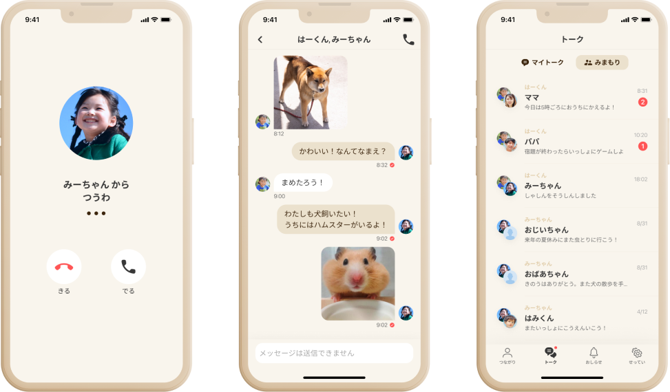 つながりを追加した相手と、メッセージのやり取りや通話ができるコミュニケーションアプリです。