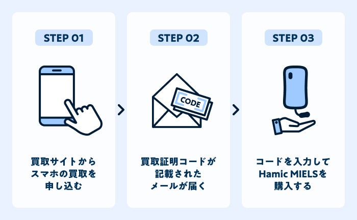 3.メールに記載された買取証明コードを利用して、Hamic公式サイトでHamic MIELSを購入する。(※ファーストスマホ シェアプランは対象外)
