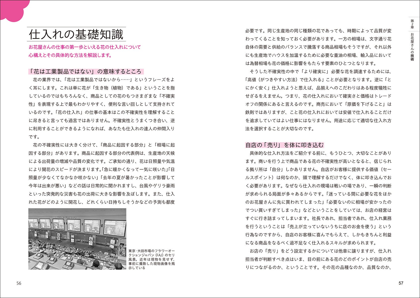 経営にまつわる基本的な考え方から、花の水揚げ・管理の仕方、陳列方法、流通の仕組み、トレンドまで、これからはじめる人はもちろん、経営を見直したい人にも役に立つ情報が満載です。