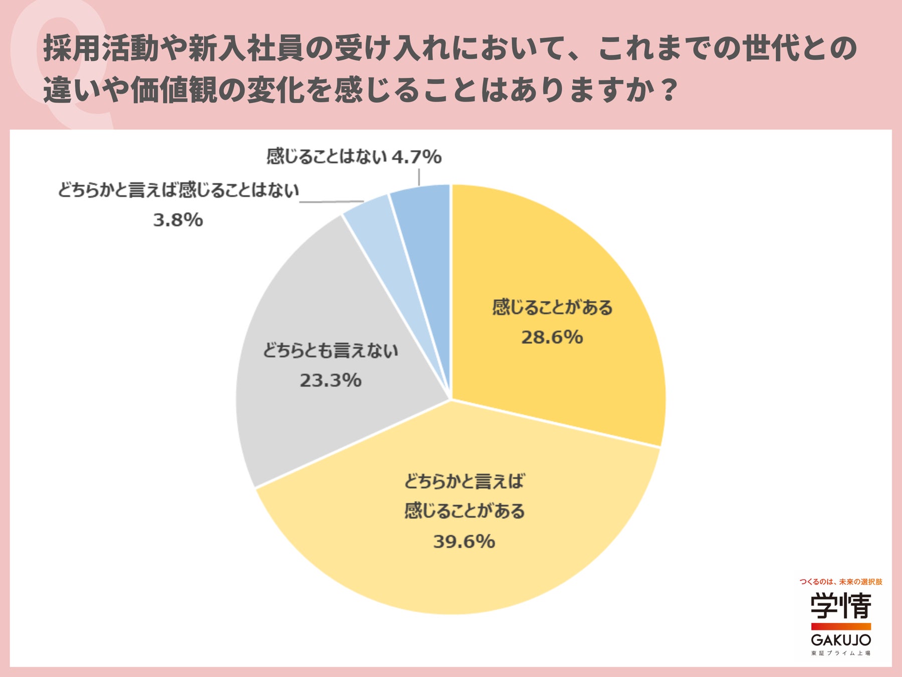 採用活動や新入社員の受け入れにおいて、これまでの世代との違いや価値観の変化を「感じることがある」の回答が約7割。約6割は、人事制度を変更・変更予定。