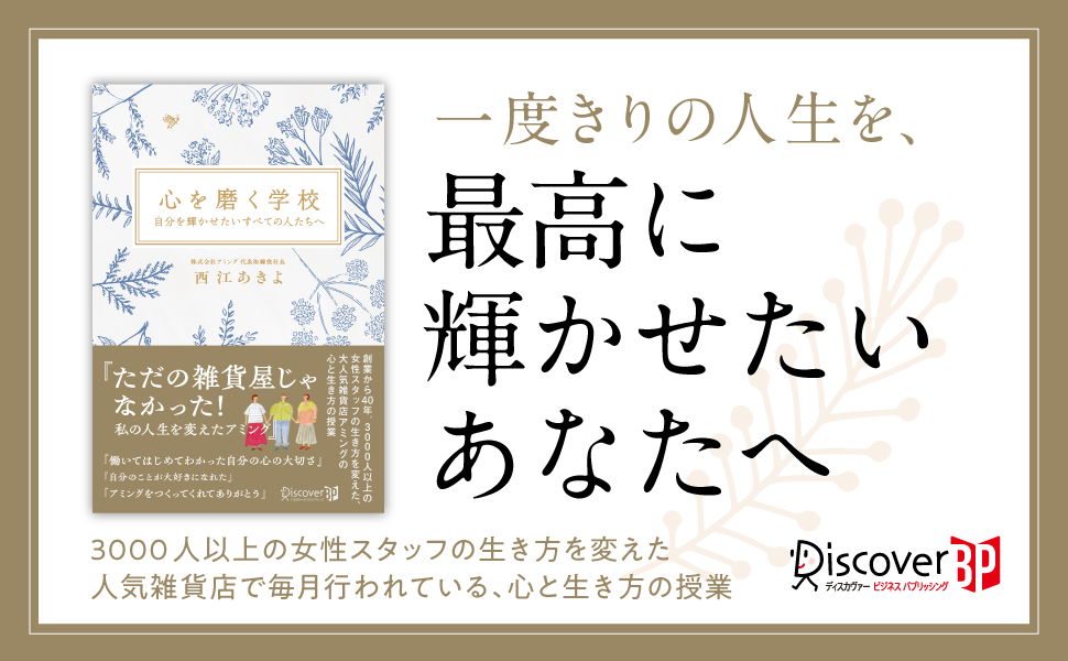 著者は、北陸地方を中心に全国に33店舗を構える大型雑貨店「Aming(アミング)」を運営する西江あきよさんです。