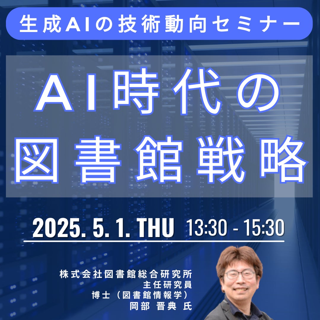 JPI(日本計画研究所)は、株式会社図書館総合研究所 主任研究員 博士(図書館情報学) 岡部 晋典 氏を招聘し、AI時代の図書館戦略について詳説いただくセミナーを開催します。