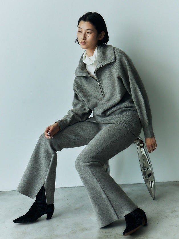 スタイルアップが叶うウエストがシェイプされた短丈のキーネックニットやニットアップとしても着られるハーフジップアップのニット、ゆったりしたシルエットでアウターライクにも着用できる大胆なレオパード柄のニットカーディガンなど、8型のニットをメインに、シックかつモードなGALLESTらしい秋冬のスタイルをご提案いたします。