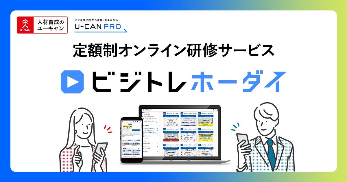 株式会社ユーキャンは法人様向けに、eラーニングやオンライン研修が受け放題の定額制オンライン研修サービス「ビジトレホーダイ supported by U-CAN PRO」をリリースいたしました。